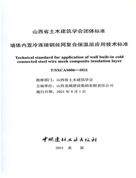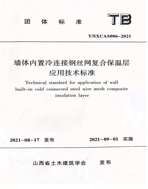 山西龍城建設(shè)集團(tuán)主編的山西省土木建筑學(xué)會(huì)團(tuán)體標(biāo)準(zhǔn)《墻體內(nèi)置冷連接鋼絲網(wǎng)復(fù)合保溫層應(yīng)用技術(shù)標(biāo)準(zhǔn)》T/SXCAS006-2021,已于2021年8月17日發(fā)布,2021年9月1日正式實(shí)施。